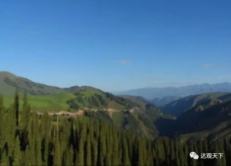 路在山陵脊背上盘旋延伸,就如站在了高高的山顶之上,一窗视野居高临下。苍山碧穹,连绵千里,蓝天笼盖着绵延的茂林旷野,北疆水土的丰沃全在一目了然间。