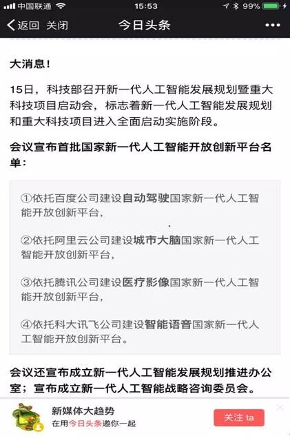 我们必须看到,阿里已不是一家单纯的电商公司,腾讯也不是一家即时通讯的公司,百度、京东、头条、摩拜等只要他们能在市场上站稳脚,他们也都会利用互联网在信息传输中的便捷性,向对方的领域扩展,最终他们都是以数据为驱动,在带宽、云服务、用户、分发等方面向整个社会(当然包括商业)提供互联网服务的基础设施,他们是电信运营商的物理网的基础上的,更高级的虚拟运营商。就如同一颗颗拥有无限转发器的卫星,任何人都可以用它向全世界喊话,也可以听到全世界的喊话。就其能力而言,他们已经达到了国家工程。尽管我们也许心里还不服气,但事实上它们已经得到了国家的认同,请看截图。