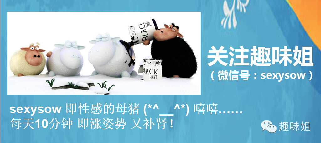 关注趣味姐(微信号:sexysow,英文直译即性感的母猪!嘻嘻)