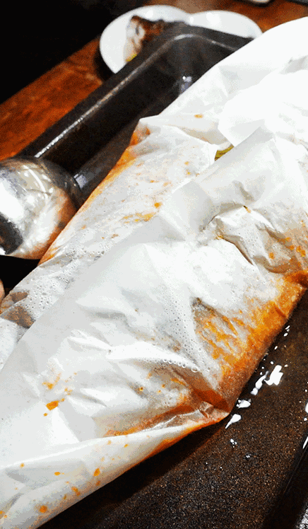 要放在纸上烤,每月还几乎卖出1500锅的纸包鱼。这样的鱼不仅入味,而且吃起来不干,更有水分。鱼上桌前就片好形,一夹就是块鱼肉,几乎无鱼刺。