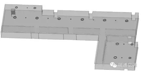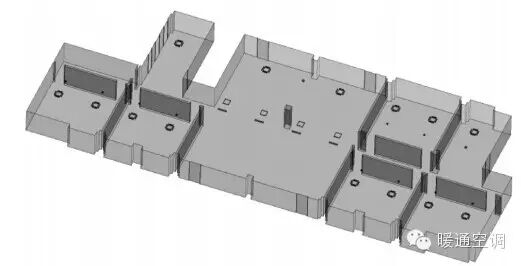 4)项目特点 :项目为商用写字楼,考虑到将来的灵活使用,空调采用风冷多联机系统。而现代商用建筑同样会考虑使用者的需求,特增加新风系统,以保证室内更好的空气品质。由于使用多联机夏季制冷、冬季制热,冬季时,室外引入的新风是否会使得室内的空调制热效果打折扣,就成了业主方主要的顾虑。特采用气流模拟分析的方法确认新风引入对于室内机制热效果的影响。