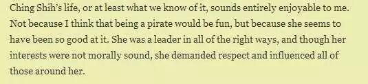 一些坊间流传的版本说生活贫困的她只能在渔船上卖身,是被上岸打家劫舍的海盗头子郑一(Ching I)抓走被迫当了压寨夫人,可是从一个懵懂少女嫁入豪门摇身一变成权谋老大的故事更像是《甄嬛传》的翻版,开挂的人生又怎能落入这样的窠臼呢?