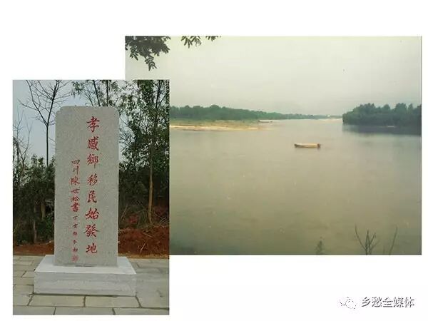 麻城南湖街道办事处十里铺村,举水河古河道旁,今立有石碑,上书:孝感乡移民始发处。