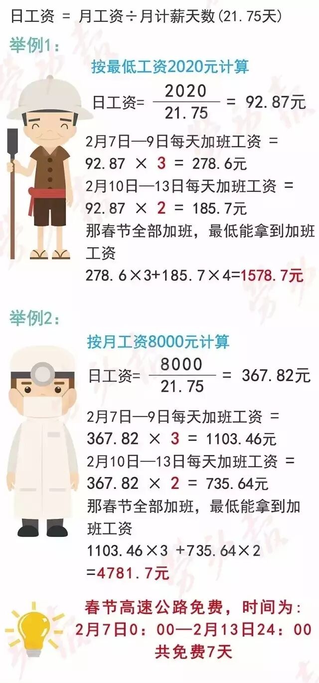 春节等法定节假日加班,员工应获得4倍工资。其中,一份为员工当日正常应得工资,另外三份为法定节假日加班的加班工资,即按照“3+1”计算发放。