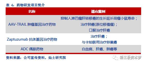 Ø 多方位开展基因治疗药物研发,提升竞争力。在基因治疗和靶向药物开发方面,公司与中国医学科学院、武警总医院等单位达成合作协议共同进行病毒载体应用于疾病模型构建和靶向治疗肿瘤药物的开发。目前公司重点推进 Obio001、Obio002 及 Obio003 三款基因治疗及靶向治疗新药研究,此外,公司还将启动针对免疫细胞治疗药物生产中的中间产品肿瘤抗原受体(CAR,cancer antigen recptor)病毒载体的研究开发。公司基因治疗药物研发项目包括:AAV-TRAIL肿瘤基因治疗药物、Zaptuzumab抗体基因治疗药物、Zaptuzu偶联药物ADC。基因治疗药物适用症包括头颈癌、肺癌、肝癌、卵巢癌、白血病、胰腺癌、肿瘤个体化医疗等。