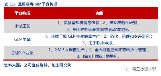 指提供病毒载体包装生产CRO、基因药物研发生产CMO。2016年公司与通用电气医疗集团(GE 医疗)开展基因治疗全方位战略合作,建设国内首个基于一次性技术的GMP级重组病毒生产车间,并在基因治疗领域开展免疫治疗用病毒项目的技术转移,进行CMO项目合作。