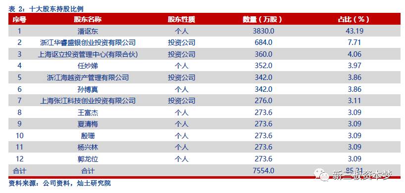 公司总股本8868万股,流通股3616.16万股,公司2017年10月30日公司新增发行84万股,公司总股本变为2217万股后,2017年11月8日公司召开股东大会进行权益分派,以2217万股总股本为基数,以资本公积向全体股东每10股转增30股,分红后总股本增至8868万股。公司董事长兼实际控制人为潘讴东先生,直接持有本公司股份3830万股,并通过上海讴立投资管理中心(有限合伙)间接控制本公司股份360万股,直接持有及间接控制公司合计47.25%表决权的股份。同时,公司控股股东、实际控制人潘讴东于2017年7月11日与股东王富杰、夏清梅、殷珊、杨兴林、郭龙位、额日贺重新签订了一致行动人协议,以保障公司长期稳定的发展。