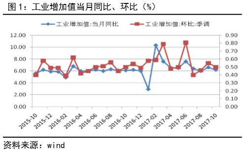 10月,规模以上工业增加值当月同比6.2%,低于预期和上月值;10月规模以上工业增加值环比增长0.5%,较9月下降0.5%;主要是受10月出口需求回落以及冬季限产持续效应影响(见图1)。分行业来看,10月份,制造业当月同比增速6.7%,低于上月1.4个百分点;而采矿业同比增速-1.3%,降幅收窄2.5个百分点;电燃水同比增速9.2%,高于上月1.4个百分点。