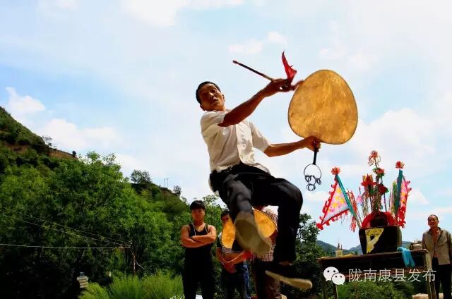当然,羊皮鼓舞祭神的道场很多,程式也较繁杂,这里不再一 一记述;总之,陇南乡村的羊皮鼓神会传承比较完整,地域特色鲜明,是我们研究古代氐羌民族生存生活状况的绝好素材,是宝贵的民俗文化遗产。