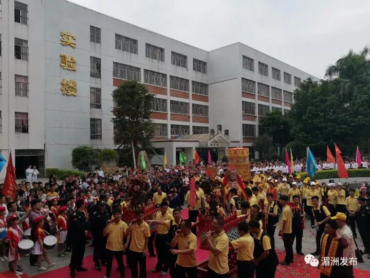 湄洲妈祖巡游潮汕第六天,驻驾潮阳实验学校,并举行三献仪式。下午徒步巡安潮阳县后驻跸赤产天后古庙祭典神邸,并举行安座仪式。