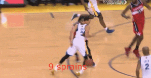他开始了噩梦一般的11-12赛季。在这个赛季,库里的右脚踝断断续续总共扭伤了5次,在本季对阵小牛的比赛里,库里再次扭伤右脚踝,赛季报销。