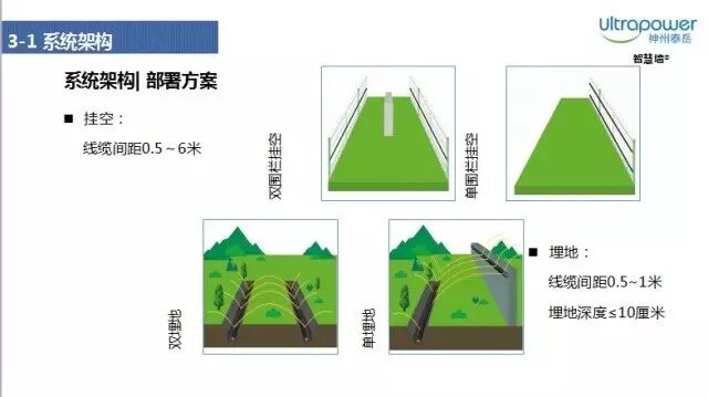 系统在部署时十分简便,即可以进行线缆挂空方式,也可以选择埋地10厘米之内的方式。挂空的方式就是将线缆固定于围网上方,使两条线缆的安装间距在0.5-6米之内;而埋地时,两条线缆的安装间距为0.5-1米左右。