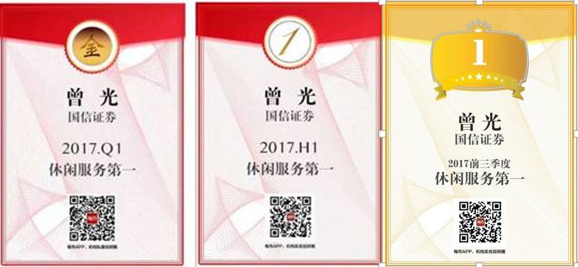 本订阅号(微信号:光仔看社服)为国信证券股份有限公司经济研究所(社会服务行业小组)运营的唯一官方订阅号,版权归国信证券股份有限公司(以下简称“我公司”)所有,仅供我公司客户使用,不因接收人收到本信息而视其为客户。其他机构或个人在微信平台以国信证券研究所名义注册的、或含有“国信证券研究”及相关信息的其他订阅号均不是国信证券经济研究所官方订阅号。未经书面许可任何机构和个人不得以任何形式修改、使用、复制或传播本订阅号中的内容。国信证券保留追究一切法律责任的权利。