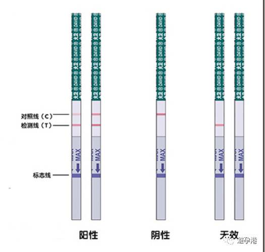 阴性:只在试纸条上端出现一条紫红色带而下端无色带出现,表示未怀孕。