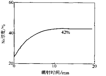 多组分材料由于其中各元素的溅射产额不同,溅射产额高的元素被大量溅射掉,而溅射产额低的元素在表面富集,使得测量成分发生变化,称之为择优溅射。有时择优溅射的影响很大。如上图。