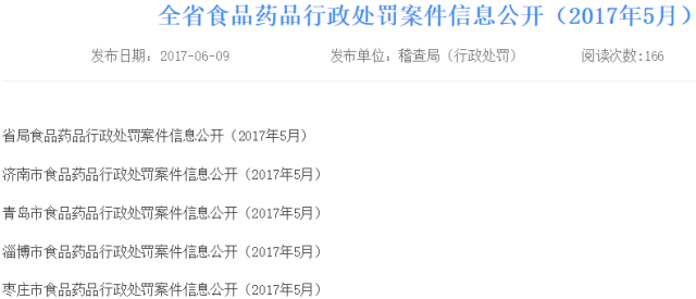 | 16 | 山东罗奥生物制品有限公司 | 未经食药部门备案擅自异地设立库房 | 处罚款壹万元整。 |