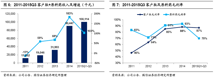 药品包装组合受制于产能瓶颈。成纪“二合一”及“三合一”产品市场需求旺盛,但原有的灭菌水设备每分钟产能仅为40瓶,每月产能不到100万元,无法满足销售需求。目前公司已经从东富龙定制了两套新设备,从而有效的解决了产能问题。新设备每月产能预计达到2000万元。药品包装组合业绩有望在2015年四季度大幅反转,并从明年起保持正常增长。