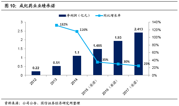 翰宇收购成纪后,双方做出15-17年成纪归属母公司的净利润承诺分别为1.485\1.93\2.413亿元。