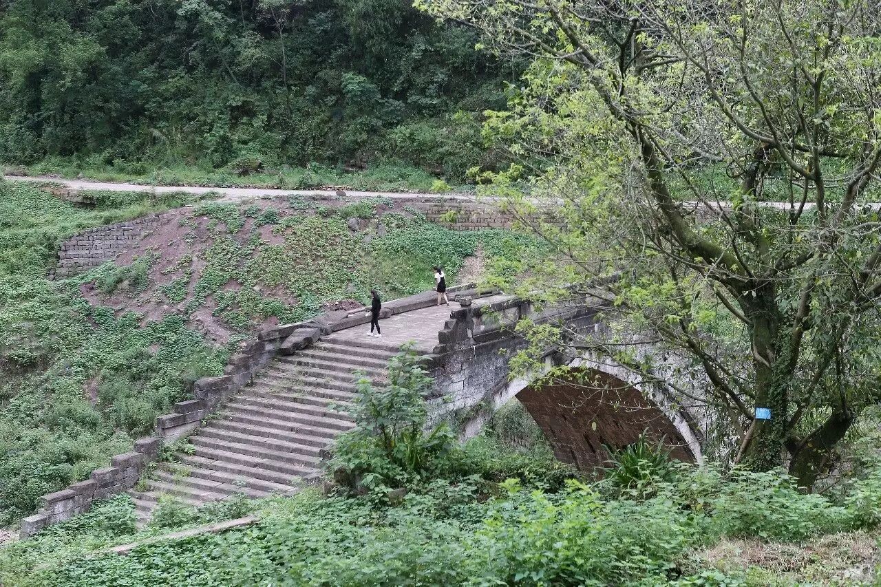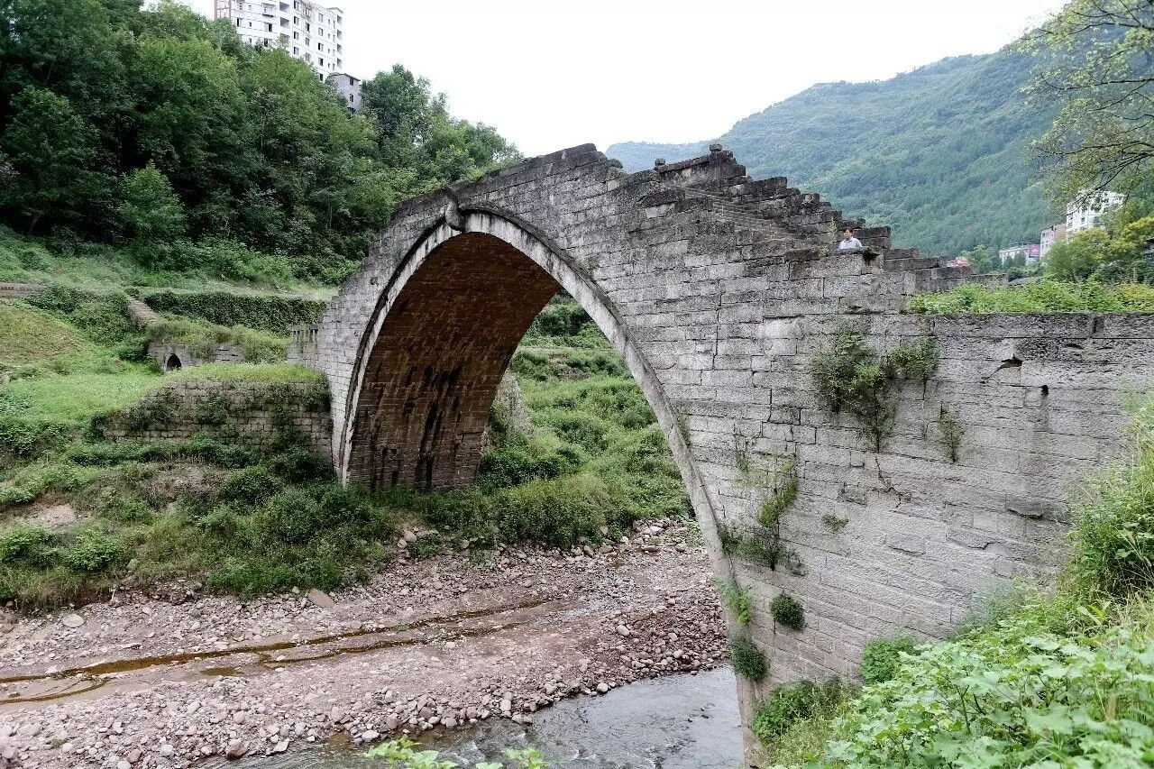 石板平铺桥面,两端皆有踏道,拱高14米,跨度28米,拱顶正中悬铁制“斩龙剑”一把;西南引桥相接,长27米,宽3.78米,有单孔小拱。正桥、引桥拱顶两侧均有圆雕龙头、龙尾,桥栏两外侧中部刻“述先桥”三字,字体楷书阴刻,桥西侧立有捐资碑五通,字体楷书阴刻,为著名书法家刘孟伉所书。可别小瞧这座其貌不扬的石拱桥,它是云阳现存最大石拱桥,对研究渝东地区桥梁建筑的发展、石雕艺术以及民风民俗等有较高的价值。