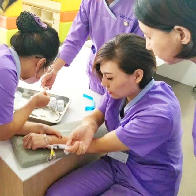 终于,经过安联妇婴医院产科门诊护理团队多番查阅资料,护理总监沈虹亲身示范,我们找到了最佳方案:使用套管针做糖耐量试验,方便快捷,一针搞定,并保证检测结果的准确性,开创沈城医院先例哦。