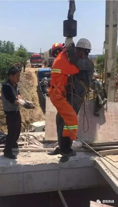 4月30日11时38分,崇阳县天城镇污水处理厂附近一男子不慎落入正在修建的污水井里,情况十分危险,接到报警后,当地消防官兵紧急赶赴事故现场进行救援。