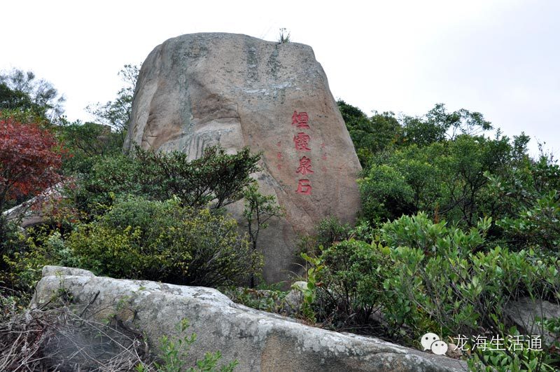 山巅之北是“百丈泉”,一块巨石从山巅直插海底,石上镌有“万丈丹梯”四个大字。诗云,“闻说丹梯有万寻,幽崖迢遍旦出阴,,直入蟾宫抱月吟。”