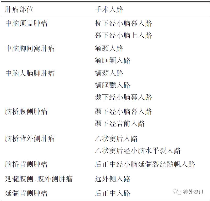 表2. 不同部位脑干胶质瘤采用的手术入路。