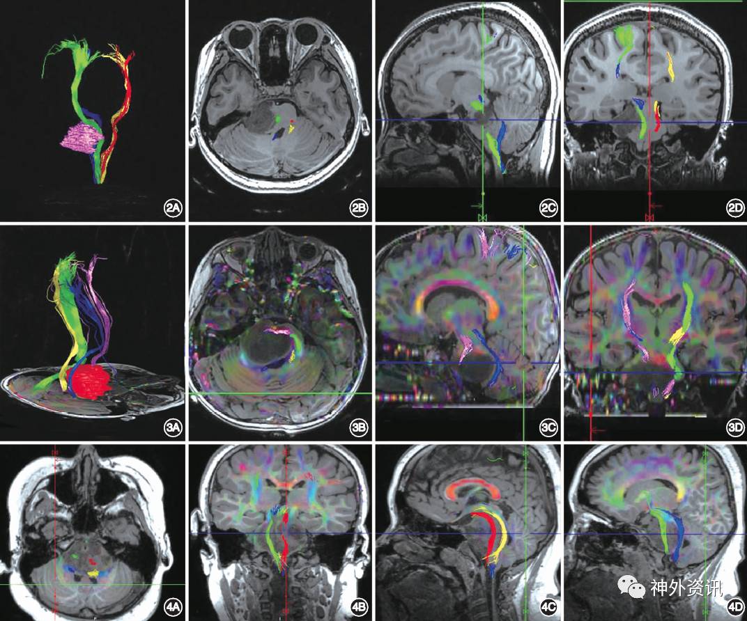 C型:为穿过型,CST从肿瘤内部穿过,患者受累肢体肌力为Ⅲ~Ⅴ级(图4)。