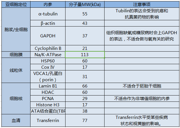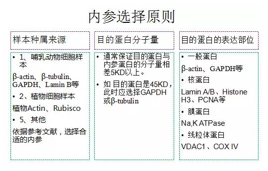 eg:在细胞增殖相关试验中,c-Jun由于自身表达变化就不适合做内参;而在凋亡实验时,TBP、Lamin等也不适合作为内参。因此设计实验方案的时候应该考虑这些因素并查询相应文献,在实验过程中也应该注意如果内参表达出现异常,应考虑这方面因素。