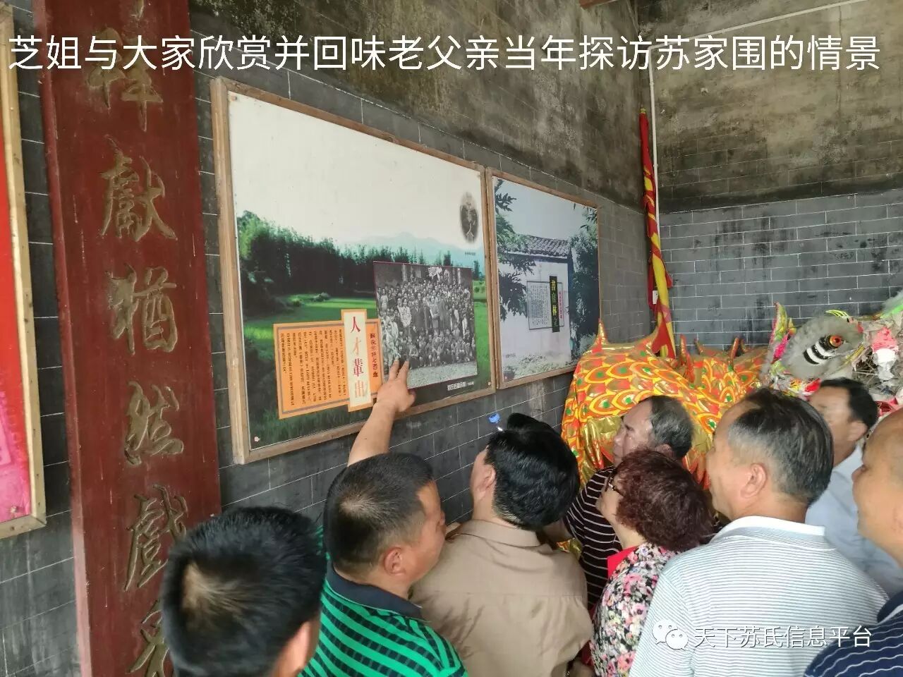 大家接见互相介绍认识后,一起步入义峰苏公祠,芝姐眼快,一下就看见了琳琅满目的照片中找到了他父亲与众乡亲的老照片,并感慨万千地表示感谢大家对他老父亲的尊重与怀念,并当即资助一万元现金给理事会,要求重塑宣传专栏,保存好历史资料,有利于承前启后,继往开来,进一步发扬前辈优良传统和精神。