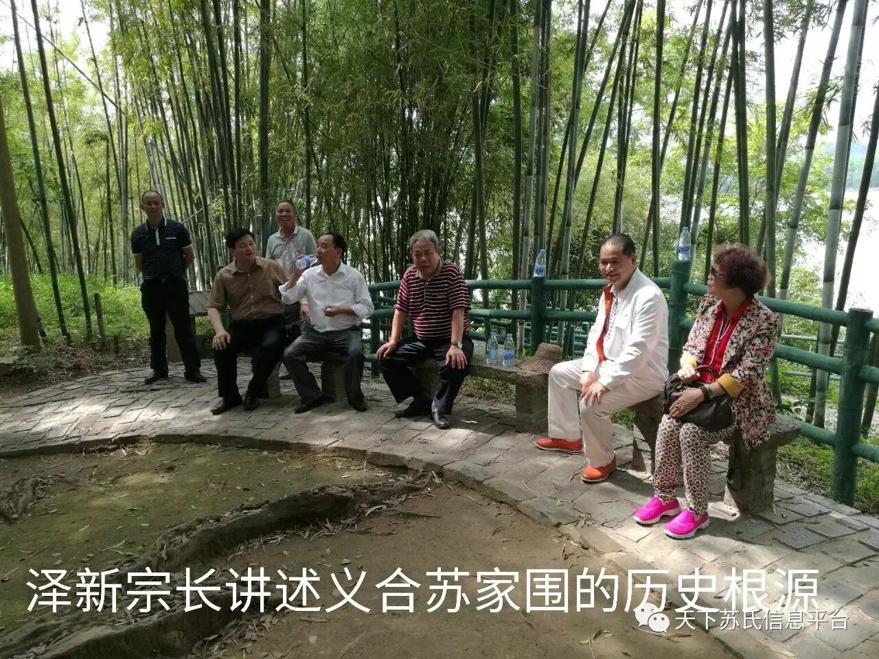 座谈中苏泽新和苏瑞国两位宗长分别讲述了东坡公第八代孙天荣公前往番禺仼职途经河源义合的前前后后及秀弘公买地落基义合繁衍后代的祥细经过情况,并引领大家游览了整个村落。