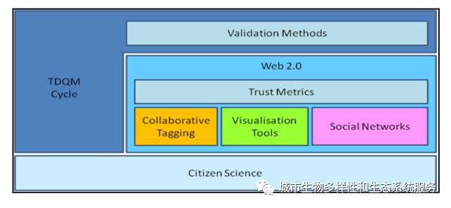 Abdulmonem在第六届e-Science会议上发表文章Enhancing the Quality and Trust of Citizen Science Data。文章提出了一个技术框架,该框架将数据质量指标和可信度指标结合,为公众科学数据的可靠性提供了一个衡量标准,从而实现数据“有理可依”的使用。该框架中,在线公众科学社区中的用户信任度彼此之间受到相互衡量、预测和汇总,此外该系统还将为数据使用者提供查询、可视化、自动生成报告等多种服务。