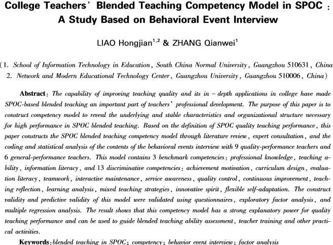 关键词:SPOC混合教学;胜任力;行为事件访谈;因子分析