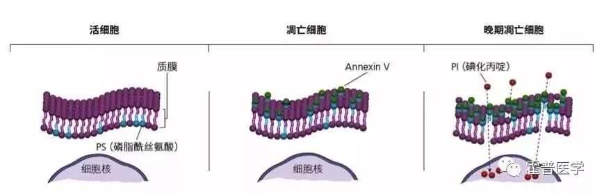 细胞凋亡是我的一种自主有序的死亡,伴有一系列细胞特征的改变,包括DNA降解、线粒体膜电位下降、细胞膜上脂质的不对称分布被破坏。这些变化都可以利用对其具有敏感性和特异性的染料和试剂,通过流式细胞仪检测。