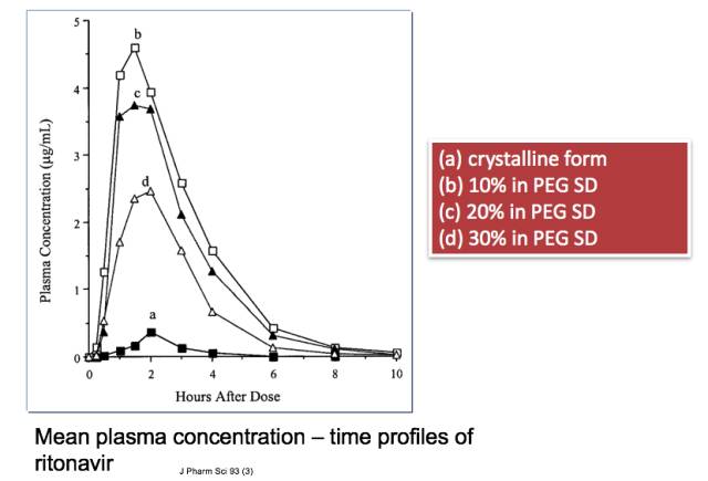 溶出或者体内重结晶,导致生物利用度的下降。不同处方工艺具有不同的维持过饱和状态的能力: