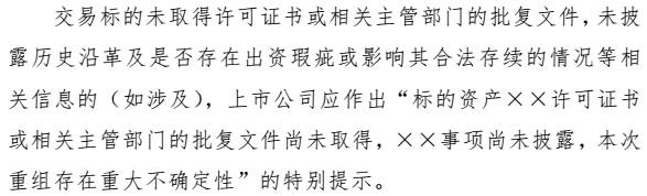 交易标的涉及立项、环保、行业准入、用地、规划、施工建设等有关报批事项的,应当披露是否已取得相应的许可证书或相关主管部门的批复文件。