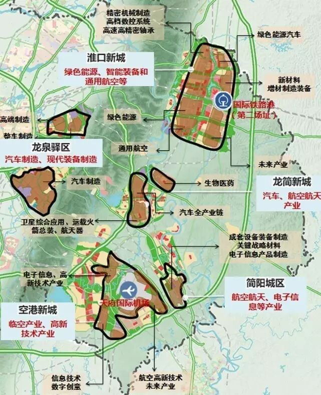 具体到“东进”的产业规划,天府国际空港新城、龙泉驿经开区、简阳等多个区域的产业规划已然明确,并进入实质化阶段。