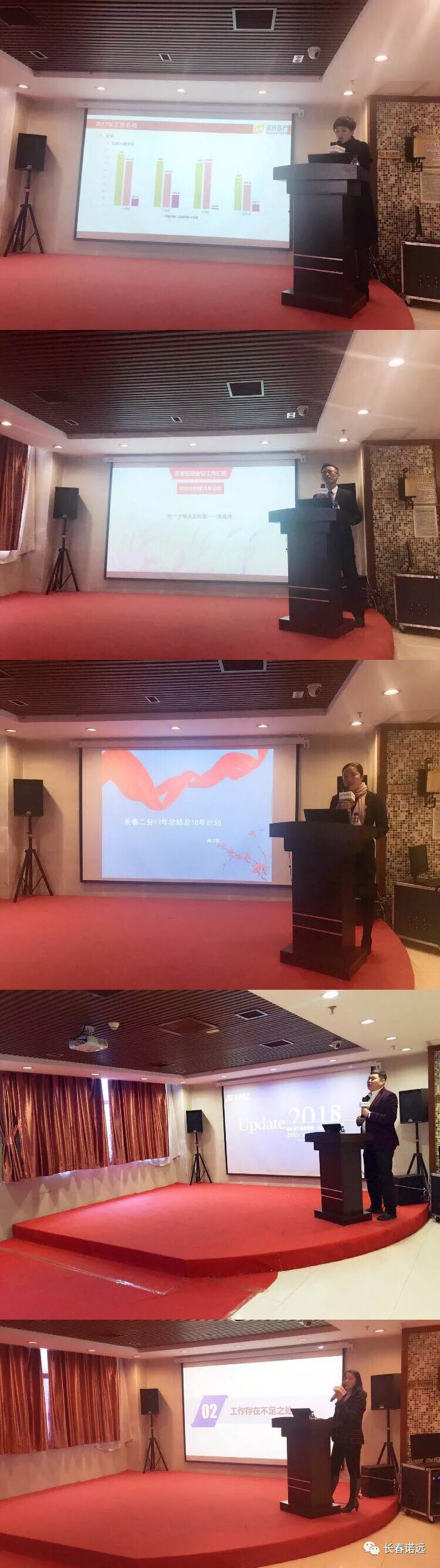 营销中心总经理孙剑辉、崔娟、许海荣、逯箭、杨雨辰、王冰先后做了汇报,客观、全面的总结了2017工作的3点不足,也提出了2018年的业绩目标。2018年,将是精耕细作的一年。