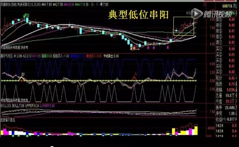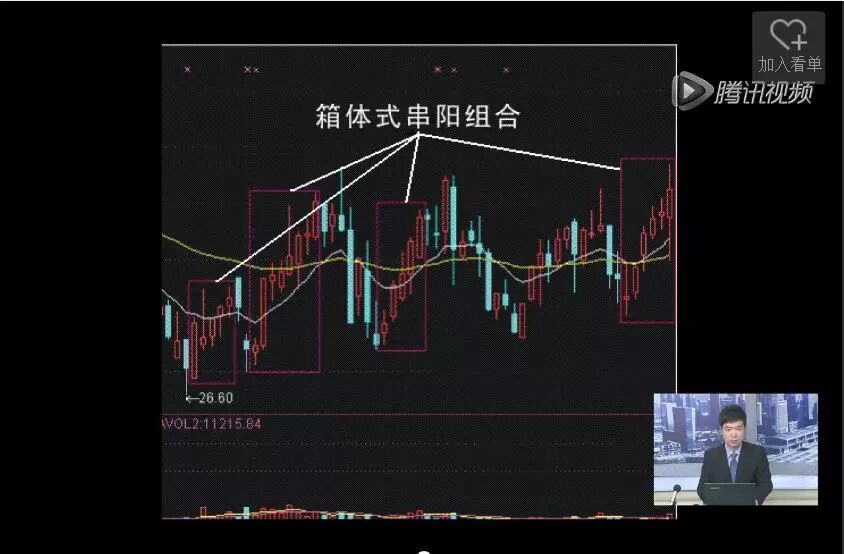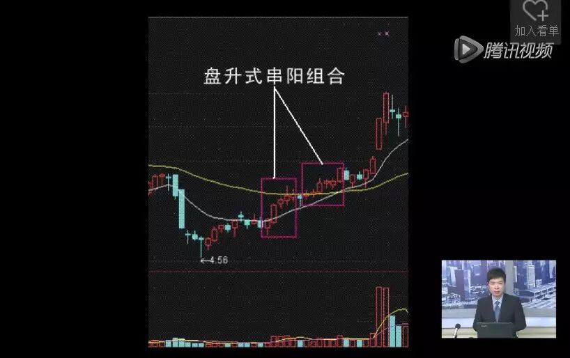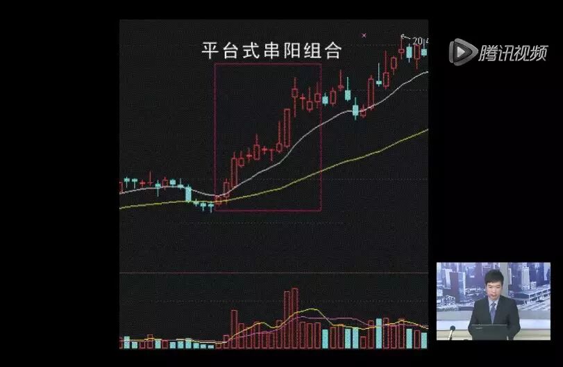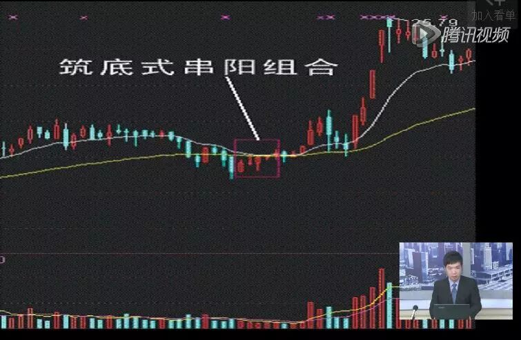 串阳,顾名思义:既K线图中出现了一连串小阳线;可以出现在低位,也有出现在一段时间的平台整理后,参见下图。