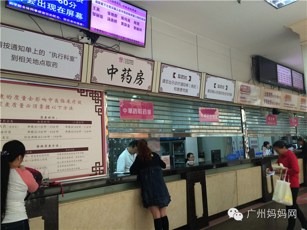 在1楼大厅,有一排专门取药的窗口。中药和西药相互挨着,不过是分开领取的。
