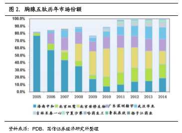 胸腺五肽作为免疫调节药物,适用于慢性乙型肝炎的治疗及自身免疫性疾病、免疫缺陷和肿瘤的辅助治疗。公司产品市场份额逐年增加,2014年销售初步估计有30%左右的增幅,同时作为该产品较早上市的企业之一,公司产品规格配置较齐,招标时有一定优势,因此我们比较看好该产品近几年的增长空间。