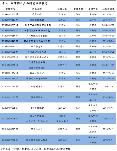 目前来那度胺、达沙替尼、富马酸替诺福韦、还原型谷胱甘肽肠溶胶囊、注射用丁二磺酸腺苷蛋氨酸等多项重磅产品已申报生产,等待审评,即将上市,这些产品均有成为大品种的条件。帕马度胺及聚乙二醇重组人干扰素α-2b注射液也已申报临床研究。