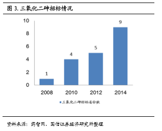 公司独家的冻干粉针基本包揽了各地中标产品,砷对早幼粒细胞白血病的治疗作用已很明确,同时国内外科研学者也早已开展针对实体瘤治疗的相关临床试验,随着医生与患者的认知与接受,的销售范围也逐步扩大。由于去年车间停产改造增速下滑,对企业盈利贡献微弱,而随着今年的产能恢复,利润将有很大的提升空间。
