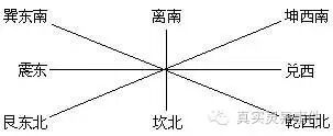 具体的人工计算比较复杂,我们在使用时可以自行用软件、万年历查询,把现代的时间转为干支纪年。![]() 方向,在这里是用后天八卦来表述东南西北、东北、西北、西南、东南八个方向。见上图。后天八卦图上乾、坎、艮、震、巽、离、坤、兑八个卦 象,是从西北方开始,顺时针表示八个方向。