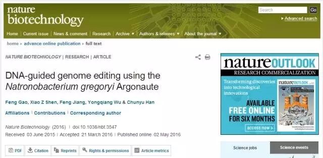 2015年6月3日,这篇仅有五人署名的文章的被投往《自然生物技术》,9个月之后,文章被接收,今年5月2日在线发表。