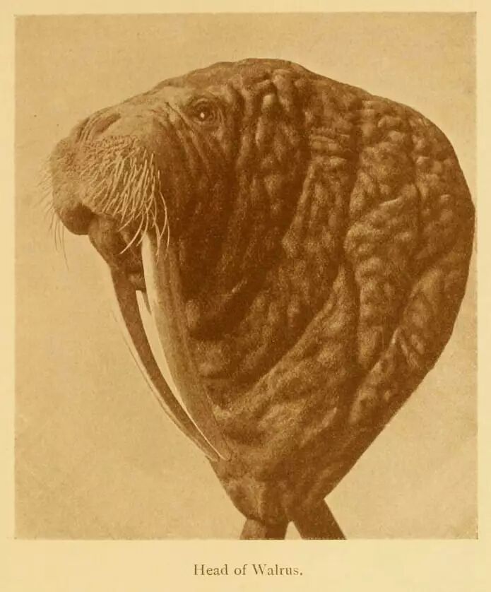 一张海象头颅的照片,来自罗兰·瓦德(Rowland Ward)《大型猎物记录:谈其分布,特征,尺寸,体重以及角和獠牙的测量》(1910),图源:archive.org