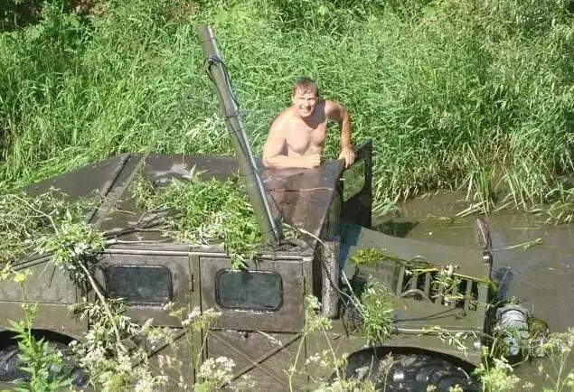 仔细看哦,上图!这可不是潜艇,这是车在水里游泳呢?80后把拖拉机改装的车而已!