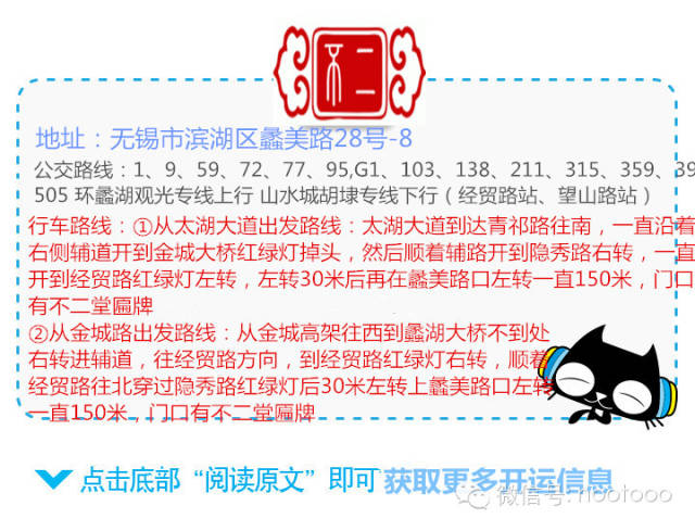 不二堂地址:无锡市滨湖区蠡美路28-7,路线详见下图