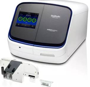 SeqStudio基因分析仪采用独特的一体式盒式磁带,结合了毛细管阵列、聚合物储存器和阳极缓冲液,极大地简化了准备和实际操作时间。SeqStudio仪器占地面积小,内置电脑和集成触摸屏,使运行设置快速,直观和灵活。该系统允许Sanger测序和片段分析在同一板上运行,而无需更换任何消耗品。虽为4通道的小通量仪器,但运行时间快,非常适合医学检验所实验室,据说机器价格还不贵!
