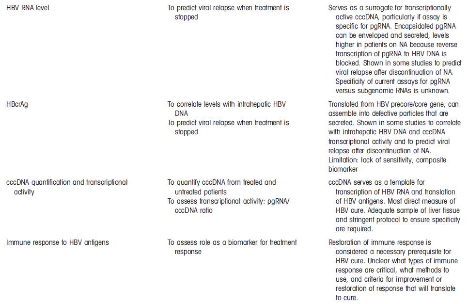对于需要标准化测定方法来对新型抗病毒或免疫调节剂的作用机理进行了解以及有新的替代标记来评估HBV“治愈”这一理念有共识。(Table 1).
